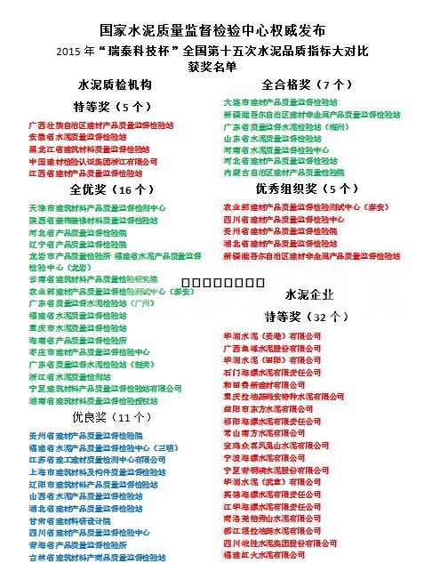 2015年“瑞泰科技杯”全國第十五次水泥品質(zhì)指標(biāo) 大對比獲獎名單 |