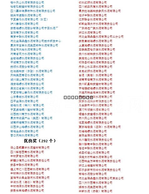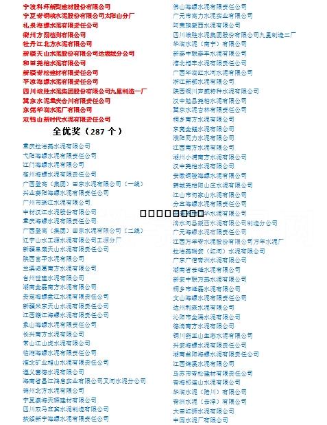 1、特等獎37個(質(zhì)檢站5個、水泥企業(yè)32個)