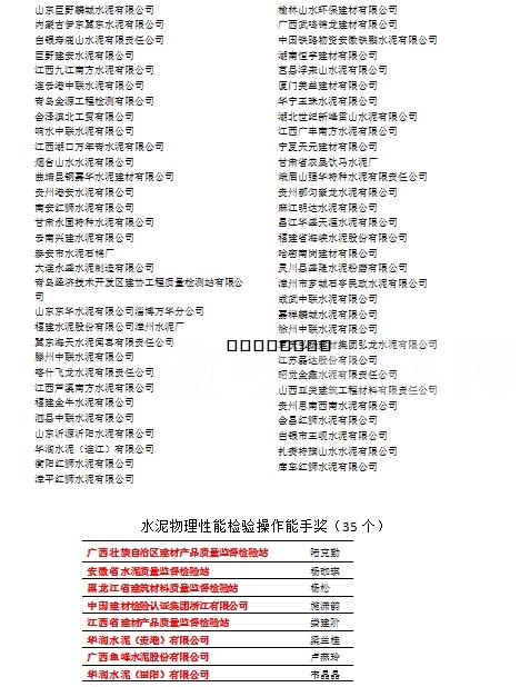 5、水泥物理性能檢驗操作能手獎37名(由特等獎獲得單位推薦)