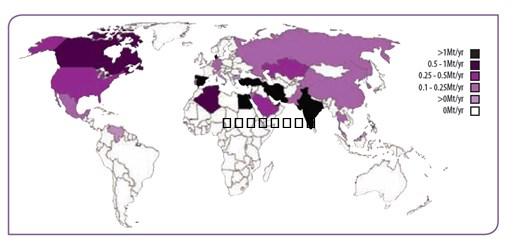 數(shù)據(jù)來(lái)源:2016年全球水泥目錄研究 圖1:全球白水泥產(chǎn)能分布圖