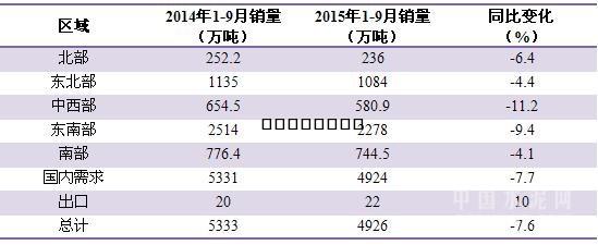 從11月底巴西水泥生產(chǎn)商陸續(xù)發(fā)布的三季度財(cái)報(bào)來看,其業(yè)績并不理想。當(dāng)?shù)亟ㄖ袌龅牡兔裕瑢?dǎo)致水泥銷量也大幅下滑。這歸咎于房地產(chǎn)融資縮減30%以及基建工程減少20%。 Votorantim 2015年前9個(gè)月水泥銷量同比下滑4%降至2670萬噸。InterCement 水泥及熟料銷量亦同比減產(chǎn)7.2%,降至2110萬噸。拉法基(256.25元/噸,0%)豪瑞在其大失所望的三季度財(cái)報(bào)中并未明確指出下滑量。 總體而言,據(jù)巴西水泥工業(yè)協(xié)會(huì)(SNIC)稱,前三季度全國水泥銷量為4920萬噸,同比下降7.6%。部分地區(qū)跌幅更大,如中西部地區(qū)銷量跌幅達(dá)11.2%,僅為580.9萬噸;東南部地區(qū)亦有9.4%的降幅,僅2278萬噸。東南部地區(qū)包括全國最大的水泥生產(chǎn)洲米納斯吉拉斯州(Minas Gerais),全州擁有水泥年產(chǎn)能2015萬噸。 表:巴西國內(nèi)各區(qū)域2014年與2015年前三季度水泥銷量對比