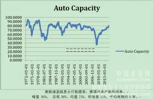 美國汽車制造業(yè)的產(chǎn)能過剩的變動幅度,比鋼鐵業(yè)還要嚴(yán)重。設(shè)備利用率在36-95% 大幅擺動。平均周期為5.5年。