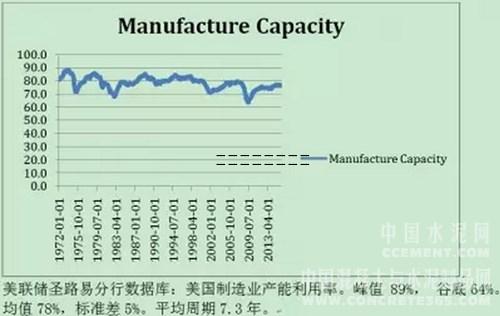 制造業(yè)的設(shè)備平均利用率比鋼鐵、汽車的狀況好一些,在64-89%之間擺動,平均周期為7年。