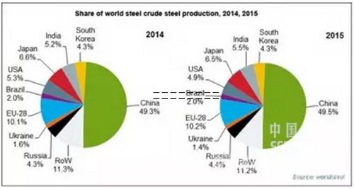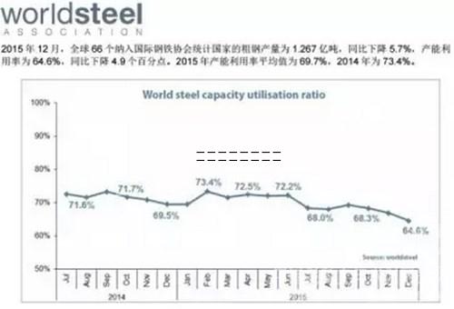 全球的鋼鐵產(chǎn)能情況如何呢?以下是國際鋼鐵協(xié)會2015年12月的最新數(shù)據(jù):全球粗鋼產(chǎn)量中,中國占比例為49.5%;全球鋼鐵企業(yè)的產(chǎn)能利用率都在下降,2015年均值為69.7%,中國2015年粗鋼的產(chǎn)能利用率為67%。