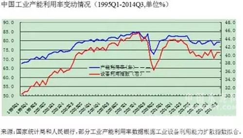 新世紀(jì)以來,中國解決產(chǎn)能過剩的呼聲出現(xiàn)過多次,2004-2005年,部分行業(yè)被認(rèn)為出現(xiàn)產(chǎn)能過剩,但隨后被迅速發(fā)展的經(jīng)濟(jì)消化。從1995年第一季度到2014年三季度的整個中國工業(yè)產(chǎn)能利用率均值來看,二十年間在65%-85%之間波動,波動幅度并不大。