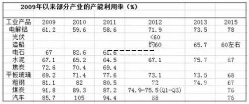 來自中國金融四十人論壇(CF40)內(nèi)部課題“我國產(chǎn)能過剩風(fēng)險評估與化解”的部分成果,左邊數(shù)值為工業(yè)產(chǎn)能利用率。 2009年以來中國部分行業(yè)產(chǎn)能利用率。其中2013年,粗鋼、水泥、平板玻璃、電解鋁、造船等行業(yè)被列為嚴(yán)重產(chǎn)能過剩行業(yè)??崭駷樾畔⑷笔?。