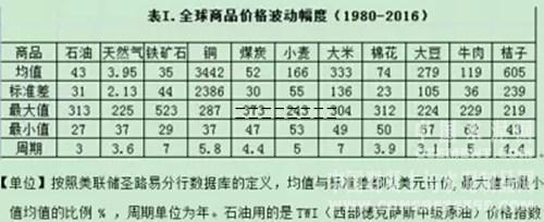 回顧歷史,過剩產(chǎn)能的產(chǎn)生,不完全是供給側(cè)的問題,更和宏觀經(jīng)濟(jì)的走勢有關(guān)。如果宏觀經(jīng)濟(jì)恢復(fù)增長,過剩產(chǎn)能很快消化不算,還會在產(chǎn)量、質(zhì)量兩方面都上新臺階。 如果宏觀經(jīng)濟(jì)失策,再優(yōu)秀的企業(yè)也會出現(xiàn)財務(wù)危機(jī)。美國三大汽車公司多次面臨破產(chǎn),全靠國會撥款救助,起死回生。所謂的“僵尸企業(yè)”,究竟是技術(shù)落伍的植物人,還是虎落平陽,必須由行業(yè)老將鑒定,不能讓沒有實(shí)業(yè)經(jīng)驗(yàn)的債主說了算。 國際大宗商品的價格波動幅度遠(yuǎn)超真實(shí)供求的變動 按照西方的主流經(jīng)濟(jì)學(xué)教科書,價格機(jī)制應(yīng)當(dāng)保證市場的平穩(wěn)優(yōu)化運(yùn)作。如有偏離,在完全競爭的市場,也應(yīng)當(dāng)反映真實(shí)供求失衡的程度。 現(xiàn)實(shí)完全相反是,以美國主導(dǎo)的大宗商品國際市場價格的大幅波動,主要由投機(jī)性的壟斷競爭驅(qū)動,不但對發(fā)展中國家造成嚴(yán)重沖擊,也導(dǎo)致西方發(fā)達(dá)國家產(chǎn)生持續(xù)的經(jīng)濟(jì)周期和不斷復(fù)發(fā)的金融危機(jī)。 我們先給大家看一組數(shù)據(jù),西方國際市場大宗商品的變化幅度和變化周期,見下表。