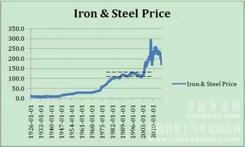 例如,鋼鐵制品的價格指數(shù),2002年1月為107.1,2008年8月漲到294.4,6年間,6年半漲了1.7倍; 金融危機(jī)爆發(fā)后的2009年5月,跌到169.2,9個月跌去43%。 危機(jī)過后鋼鐵價格依然大幅振蕩,2011年7月回升到256.9,14個月漲了52%,到2015年底又跌回171.0,4年下跌三分之一。鐵礦石2003年12月僅13.82,2008年12月升到69.89, 2011年2月繼續(xù)升到187.18,7年漲了12.5倍!然后一路下跌,到2015年12月只有39.60,4年跌去近80%。