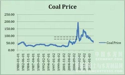 煤的價格,2005年11月為40.78, 2008年7月漲到192.86,不到3年漲了3.7倍!2009年3月跌到65.36,8個月跌去三分之二。2011年1月煤價回升到141.94,不到2年漲了1.2倍;到2015年10月又一路跌到56.05,4年跌去61%。