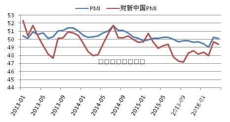 數(shù)據(jù)來(lái)源:國(guó)家統(tǒng)計(jì)局、中國(guó)水泥研究院 1.2 PMI 4月官方PMI與財(cái)新中國(guó)PMI雙雙回落,走出與3月份相反的路徑。統(tǒng)計(jì)局PMI個(gè)分項(xiàng)指標(biāo)中除主要原材料購(gòu)進(jìn)價(jià)格環(huán)比上漲,其余分項(xiàng)指標(biāo)均呈現(xiàn)環(huán)比下降的走勢(shì),生產(chǎn)、新訂單及新出口訂單回落但仍處于擴(kuò)張區(qū)間,4月份制造業(yè)固定資產(chǎn)投資增速繼續(xù)回落,將影響后期制造業(yè)生產(chǎn)指標(biāo)的進(jìn)一步回升。1月份以來(lái)原材料購(gòu)進(jìn)價(jià)格不斷上漲,4月份漲至57.6,但隨著生產(chǎn)及需求的回落,價(jià)格上漲將遭遇一定壓力。 圖2:PMI走勢(shì)圖(%)