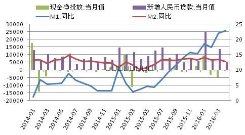數(shù)據(jù)來(lái)源:國(guó)家統(tǒng)計(jì)局、中國(guó)水泥研究院 1.4 M0、M1、M2 4月末,廣義貨幣(M2)余額144.52萬(wàn)億元,同比增長(zhǎng)12.8%,增速比上月末低0.6個(gè)百分點(diǎn);狹義貨幣(M1)余額41.35萬(wàn)億元,同比增長(zhǎng)22.9%,增速比上月末高0.8個(gè)百分點(diǎn);當(dāng)月凈回籠現(xiàn)金248億元。月末本外幣貸款余額104.27萬(wàn)億元,同比增長(zhǎng)13.1%,其中人民幣貸款余額99.12萬(wàn)億元,同比增長(zhǎng)14.4%,增速比上月末低0.3個(gè)百分點(diǎn)。 圖4:M1、M2當(dāng)月同比及當(dāng)月新增人民幣貸款與現(xiàn)金凈投放量走勢(shì)圖(億元,%)