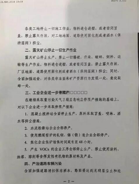 按照市重污染天氣應(yīng)對(duì)指揮部決定,2016年5月27日零時(shí)-5月31日24時(shí),在路北、路南、古冶、開(kāi)平、豐潤(rùn)、豐南、高新技術(shù)開(kāi)發(fā)區(qū)范圍內(nèi),在啟動(dòng)重污染天氣三級(jí)應(yīng)急響應(yīng)的基礎(chǔ)上,對(duì)以下工業(yè)企業(yè)進(jìn)一步采取停限產(chǎn)措施: