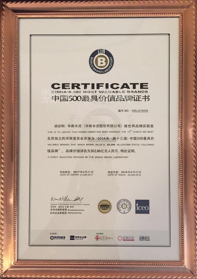 由世界品牌實(shí)驗(yàn)室主辦的“世界品牌大會(huì)”于6月22日在北京舉行,會(huì)上發(fā)布了2016年(第十三屆)《中國(guó)500最具價(jià)值品牌》分析報(bào)告。華新水泥以302.86億元的品牌價(jià)值榮登排行榜第95位,品牌價(jià)值較去年增加50.1億元,排名較去年提升1位。