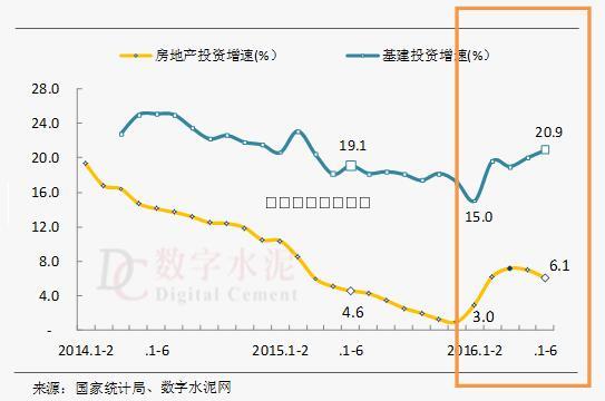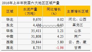 2016年上半年我國經(jīng)濟增長有所企穩(wěn),其中與水泥需求緊密相關的基建投資和房地產(chǎn)投資有明顯回升和改善,使得水泥需求表現(xiàn)好于預期,呈低速增長態(tài)勢。