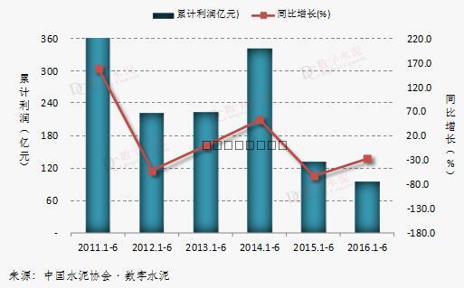根據(jù)國家統(tǒng)計局數(shù)據(jù)顯示,2016年上半年,水泥行業(yè)實現(xiàn)銷售收入3828億元,同比下降4.7%,降幅繼續(xù)收窄;全行業(yè)實現(xiàn)水泥利潤總額95.5億元,同比下降26.6%,降幅較1-5月份減少26個百分點。6月份單月水泥利潤總額為50.6億元,較去年同期增長11億元,同比增長28%。